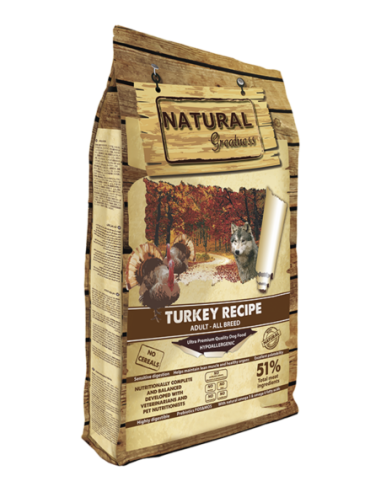 Natural Greatness pienso sin cereales elaborado con carne fresca ultra premium, lo que lo convierte en una fuente de proteína de alta calidad para tu perro. Tiene un sabor irresistible y contiene altos niveles de proteína de calidad que influyen positivamente en el sistema inmunitario del perro. Además, incluye pro y prebióticos para mejorar la digestión y la salud intestinal de tu mascota. Natural Greatness está diseñado para ofrecer una nutrición completa y balanceada para tu mascota, hecho sin cereales ni aditivos artificiales.