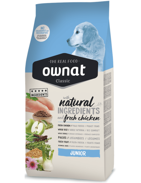 Ownat Classic es un pienso sin colorantes, conservantes ni aditivos artificiales. Elaborado ingredientes naturales, incluyendo carnes frescas que proporciona una nutrición equilibrada para tu mascota al mejor precio