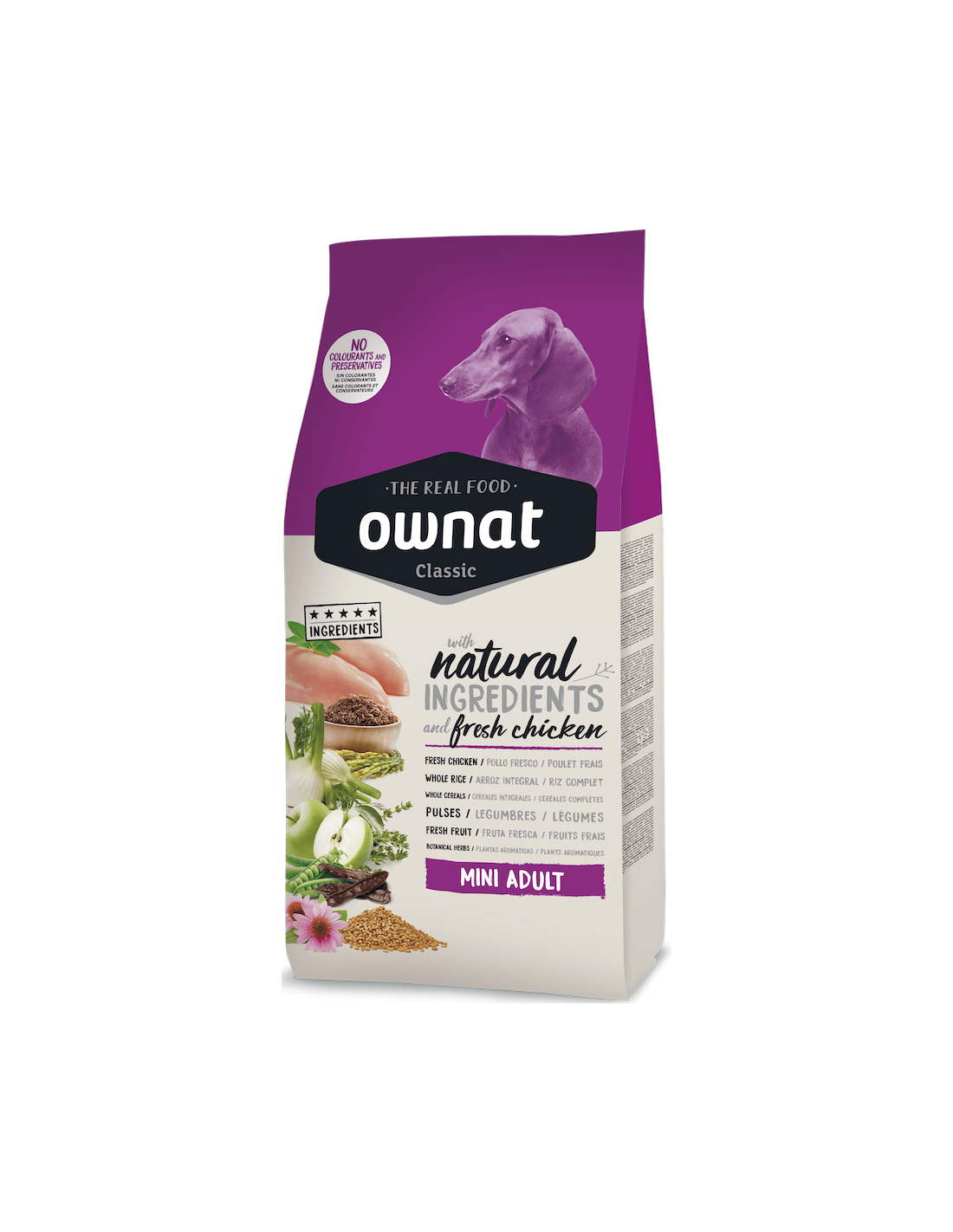Ownat Classic es un pienso sin colorantes, conservantes ni aditivos artificiales. Elaborado ingredientes naturales, incluyendo carnes frescas que proporciona una nutrición equilibrada para tu mascota al mejor precio