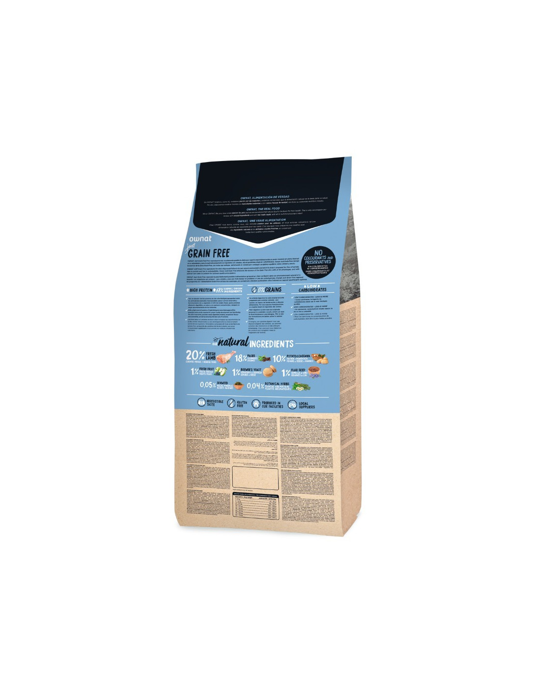 Ownat Just ofrece un pienso sin cereales, con carbohidratos alternativos como legumbres y tubérculos. Rica en proteínas lo que garantiza un equilibrio óptimo entre calidad y precio para una nutrición completa de tu mascota.