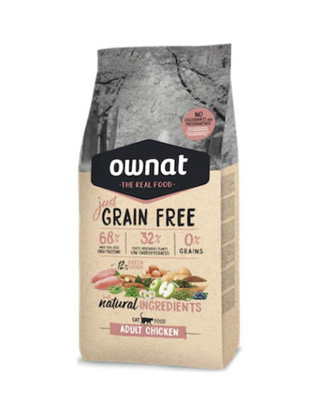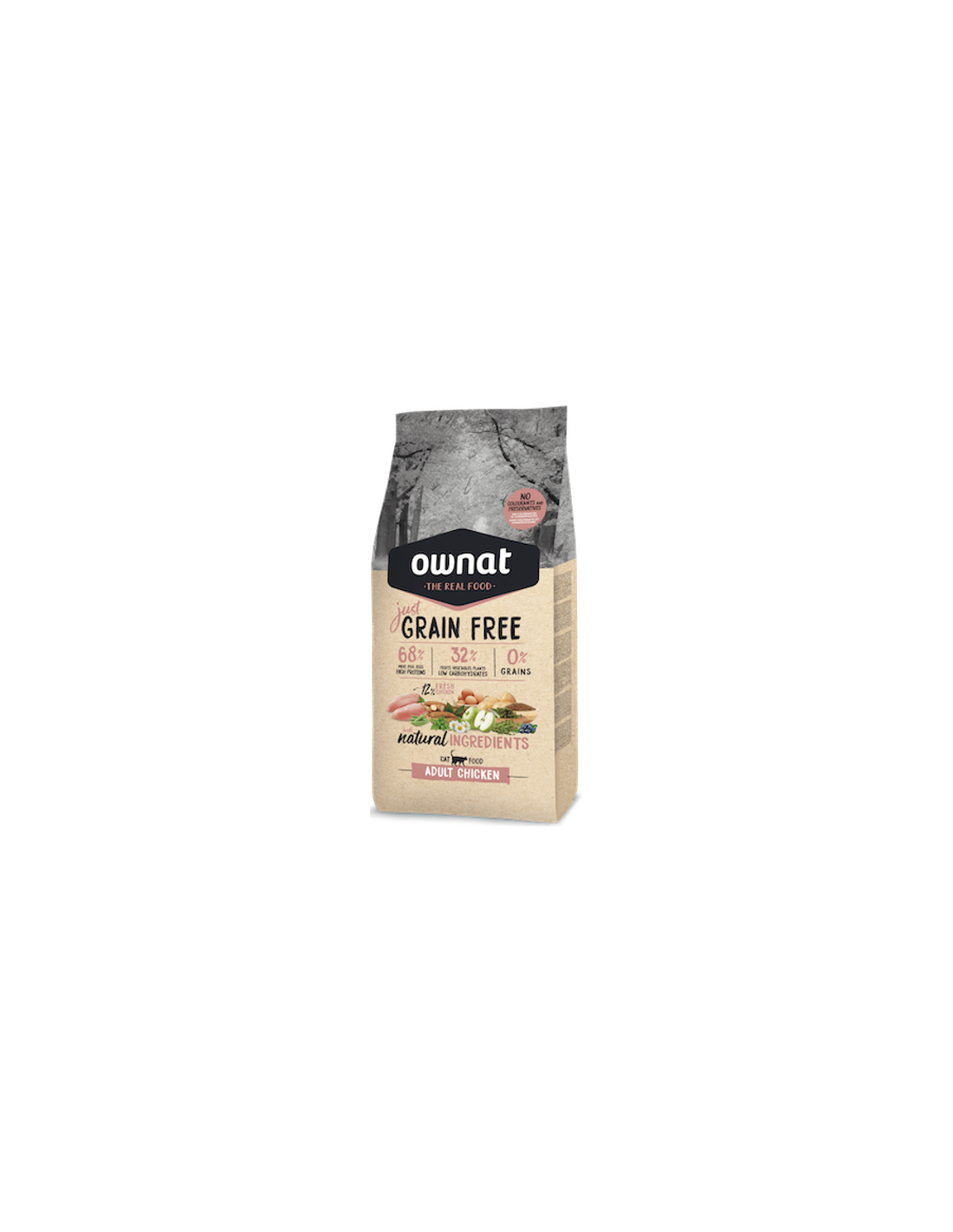 Ownat Just ofrece un pienso sin cereales, con carbohidratos alternativos como legumbres y tubérculos. Rica en proteínas lo que garantiza un equilibrio óptimo entre calidad y precio para una nutrición completa de tu mascota.
