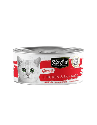 Lata de comida húmeda para gatos libre de cereales, gluten y subproductos. Nuestra receta está hecha con ingredientes de la más alta calidad y nutrientes esenciales para asegurar una dieta óptima y saludable para tu gato. En Kit Cat, nos destacamos por incluir prebióticos en nuestras recetas, promoviendo una flora intestinal saludable y fortaleciendo el sistema inmunitario de los felinos. Además, añadimos nutrientes esenciales como Vitamina E, Omega 3 y 6, y Taurina, proporcionando un extra de bienestar para tu gato.