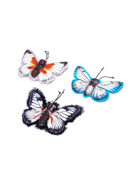Mariposas de juguete para gatos. Dimension:L16*W10cm Esta serie de juguetes para gatos presenta adorables animales simulados con formas realistas, incluyendo mariposas diseñadas para que los gatos disfruten al máximo. Cada juguete incluye hierba gatera, lo que garantiza que captará la atención de tu felino