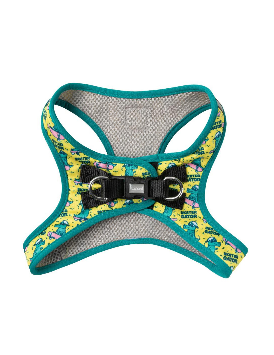 Los arneses Step In de FuzzYard son los más flexibles del mercado, fabricados con telas suaves que se adaptan perfectamente al cuerpo de tu perro o gato, proporcionando total libertad de movimiento. Gracias a la suavidad y moldeabilidad de sus telas, estos arneses no provocan rozaduras ni cortan el pelo. Diseñados para colocarse por las patas, estos arneses se ajustan fácilmente con tiras de velcro y un cierre clic. El arnés step in de FuzzYard, comparado con los arneses regulares, tiene menos centímetros para adaptarse, siendo ideal para perros con una fisonomía recta, ya que su contorno del cuello y pecho es muy similar. La parte externa está hecha con hilos finos que permiten una definición precisa del exclusivo estampado de FuzzYard. Cada lado del arnés tiene una tira reflectante que brilla con la luz, y la parte interna cuenta con doble rejilla transpirable para una excelente ventilación en los días más calurosos, además de secarse rápidamente. Todas las uniones de las telas están cuidadosamente cosidas para ofrecer acabados de calidad superior y un diseño estéticamente atractivo. Las anillas de acero inoxidable, sin soldaduras, evitan la oxidación y protegen el pelo de tu mascota y el arnés. El logotipo es de goma elástica, añadiendo un toque distintivo.