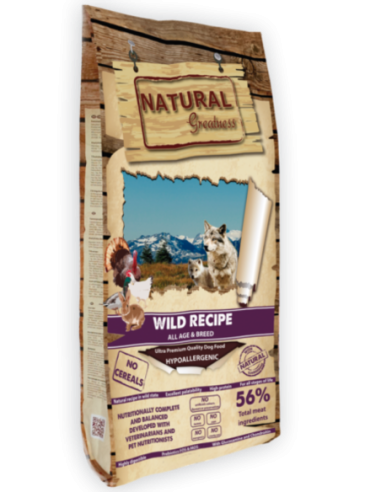 Natural Greatness pienso sin cereales elaborado con carne fresca ultra premium, lo que lo convierte en una fuente de proteína de alta calidad para tu perro. Tiene un sabor irresistible y contiene altos niveles de proteína de calidad que influyen positivamente en el sistema inmunitario del perro. Además, incluye pro y prebióticos para mejorar la digestión y la salud intestinal de tu mascota. Natural Greatness está diseñado para ofrecer una nutrición completa y balanceada para tu mascota, hecho sin cereales ni aditivos artificiales.
