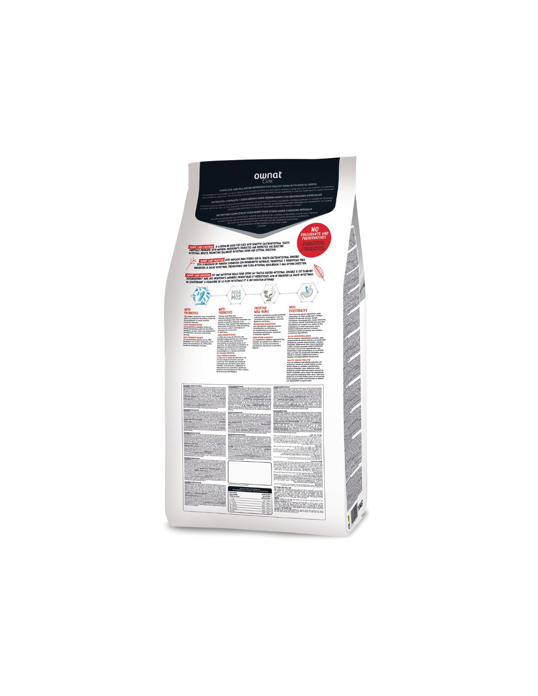 Ownat Care Digestive es un pienso para perros con tracto gastrointestinal sensible formulado con proteínas de alta digestibilidad, incluye prebióticos y probióticos para mejorar la digestión de tu perrete. Es la elección perfecta para perros con estómagos delicados y sensibles. Con nuestro alimento, puedes estar seguro de que estás proporcionando una nutrición completa y equilibrada, mientras cuidas su sistema digestivo.