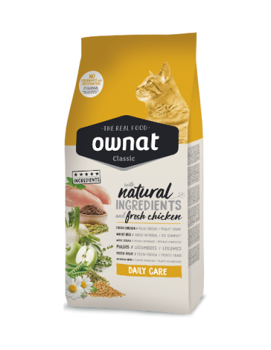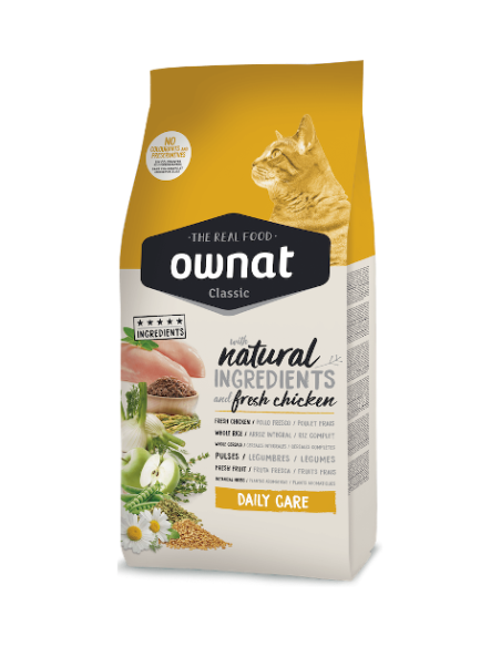 Ownat Classic es un pienso sin colorantes, conservantes ni aditivos artificiales. Elaborado ingredientes naturales, incluyendo carnes frescas que proporciona una nutrición equilibrada para tu mascota al mejor precio