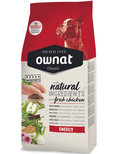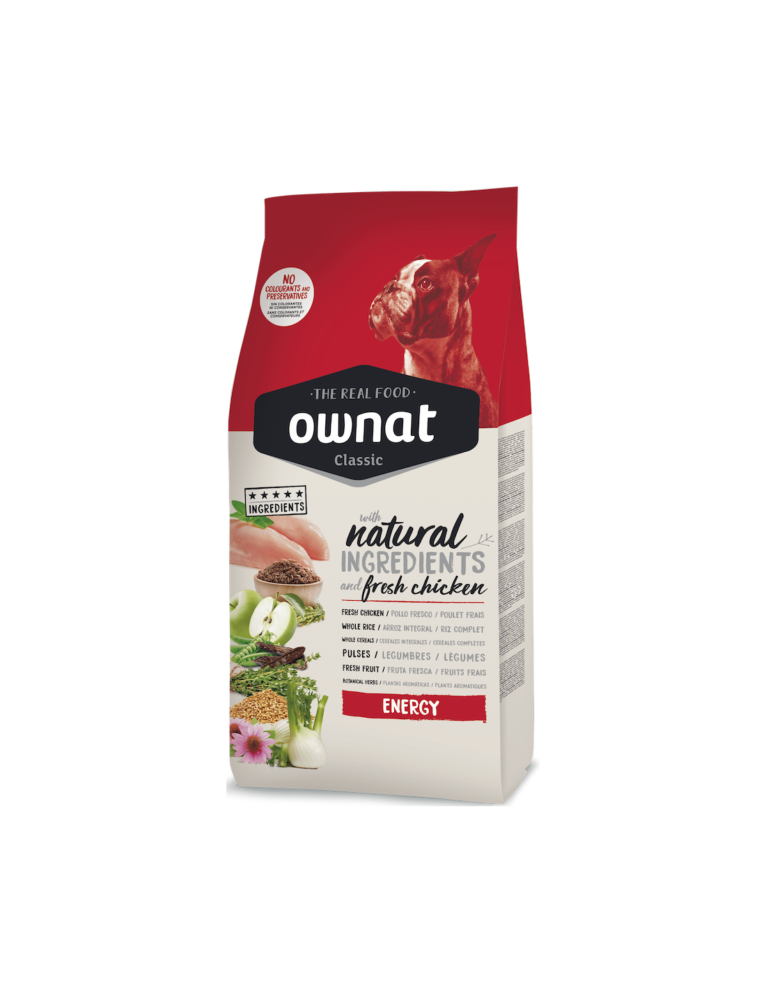 Ownat Classic es un pienso sin colorantes, conservantes ni aditivos artificiales. Elaborado ingredientes naturales, incluyendo carnes frescas que proporciona una nutrición equilibrada para tu mascota al mejor precio