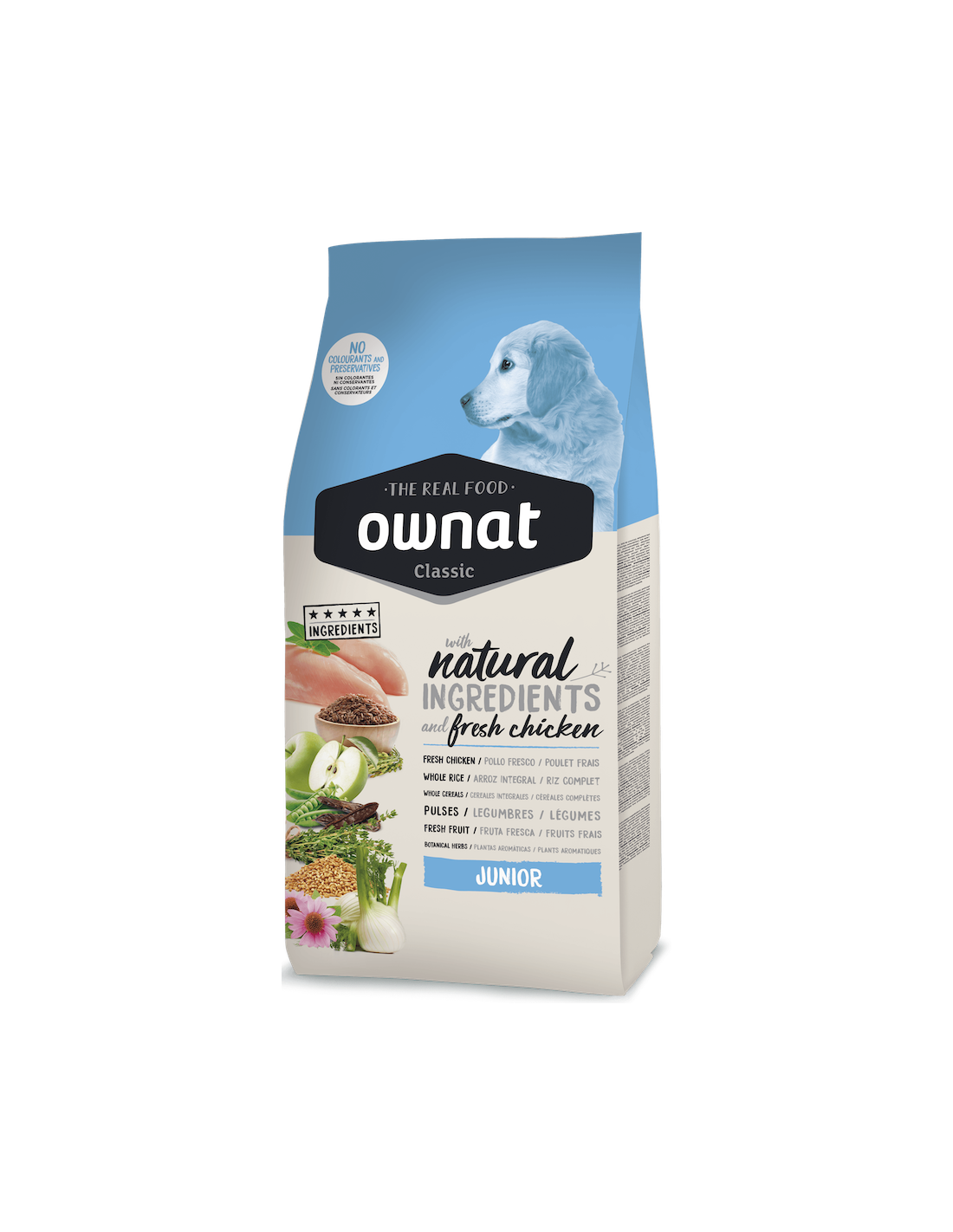 Ownat Classic es un pienso sin colorantes, conservantes ni aditivos artificiales. Elaborado ingredientes naturales, incluyendo carnes frescas que proporciona una nutrición equilibrada para tu mascota al mejor precio