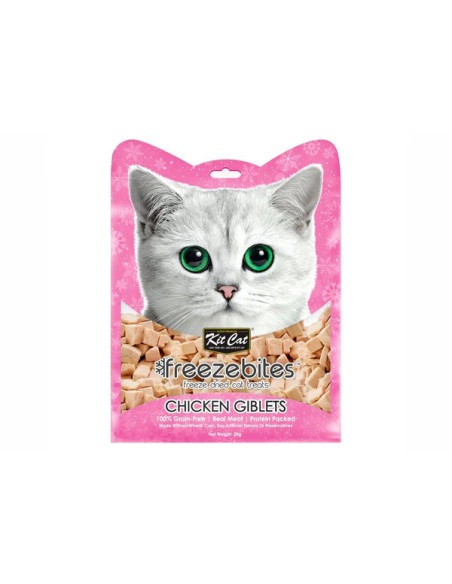 Los snacks para gatos Kit Cat Freezebites están elaborados con un solo ingrediente de alta calidad. Estos bocadillos ricos en proteínas son perfectos para gatos de todas las edades, incluso los más quisquillosos o aquellos con alergias alimentarias, sensibilidades estomacales o dietas restringidas. Diseñados como un refrigerio diario saludable, los snacks Kit Cat son suavemente vaporizados y luego liofilizados para conservar los nutrientes y potenciar los sabores naturales. Sin cereales, gluten ni aditivos artificiales.