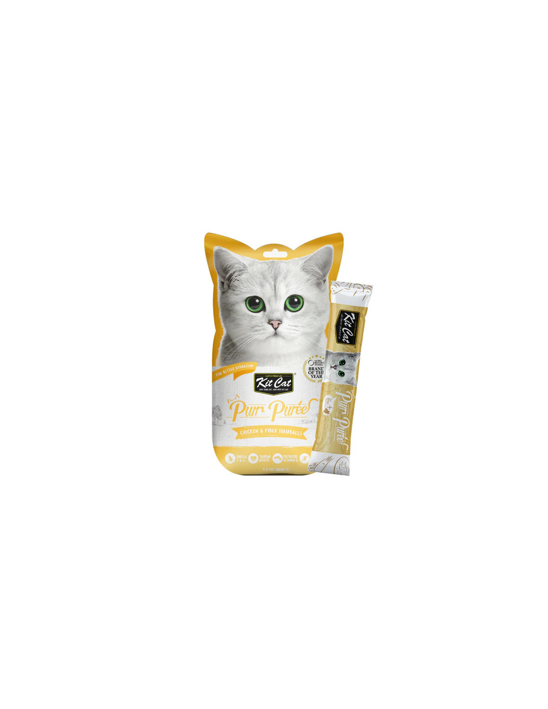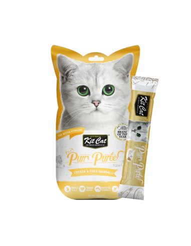 Kit Cat PurrPuree es el snack cremoso perfecto para premiar a tu gato y complementar su alimentación diaria. Hecho con ingredientes 100% naturales de alta calidad, sin cereales ni conservantes artificiales, este delicioso bocadillo es una opción saludable para tu felino. Enriquecido con nutrientes esenciales y prebióticos como la Taurina y la Vitamina E, Kit Cat PurrPuree apoya el desarrollo óptimo de tu gato. Su proceso de elaboración cumple con estrictos certificados de calidad, garantizando un producto excelente para una dieta variada y equilibrada.