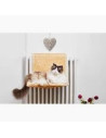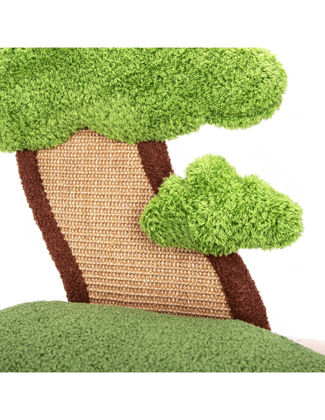 Esta cama para gatos está confeccionada con materiales de alta calidad, incluyendo algodón lavado, tablero de partículas, tejido de sisal y algodón PP. Viene equipada con un cojín extraíble para una fácil limpieza, así como un rascador y un juguete incorporado para mantener a tu felino entretenido. Además, su diseño decorativo y atractivo añade un toque bonito a cualquier espacio.