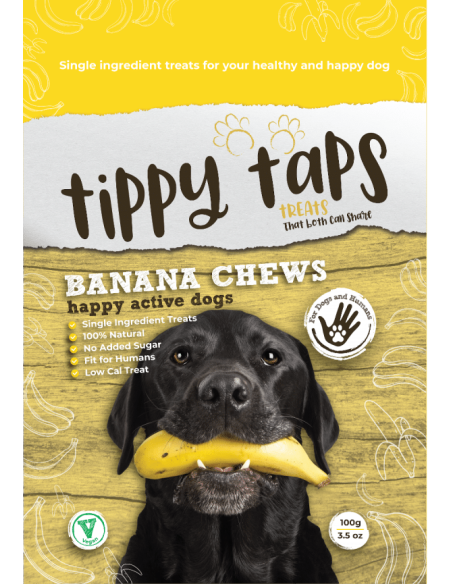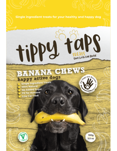 Los Tippy Taps Treats Banana Chews son el snack ideal para perros activos. Ricos en potasio, ayudan a fortalecer los huesos y vasos sanguíneos de tu mascota, además de mejorar su tono muscular. Estos masticables también contienen vitamina B6, un antiinflamatorio y diurético natural, vitamina C para reforzar el sistema inmunológico, y probióticos naturales que favorecen una flora intestinal equilibrada, garantizando un tracto digestivo saludable. Perfectos para sesiones de entrenamiento, los Tippy Taps Treats Banana Chews mantienen a tu perro sano mientras se mantiene activo y enfocado.