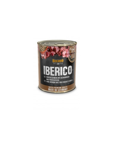 Composición: Carne, pulmón, hígado, riñón y bazo de cerdo ibérico (65 %); caldo de carne de cerdo ibérico (25,5 %); garbanzos*¹ (5 %); arándanos agrios (2 %); semillas de chía (1 %); cáscaras de huevo*² (0,5 %); minerales (0,5 %); aceite de cártamo (0,5 %) *¹cocido *²secado