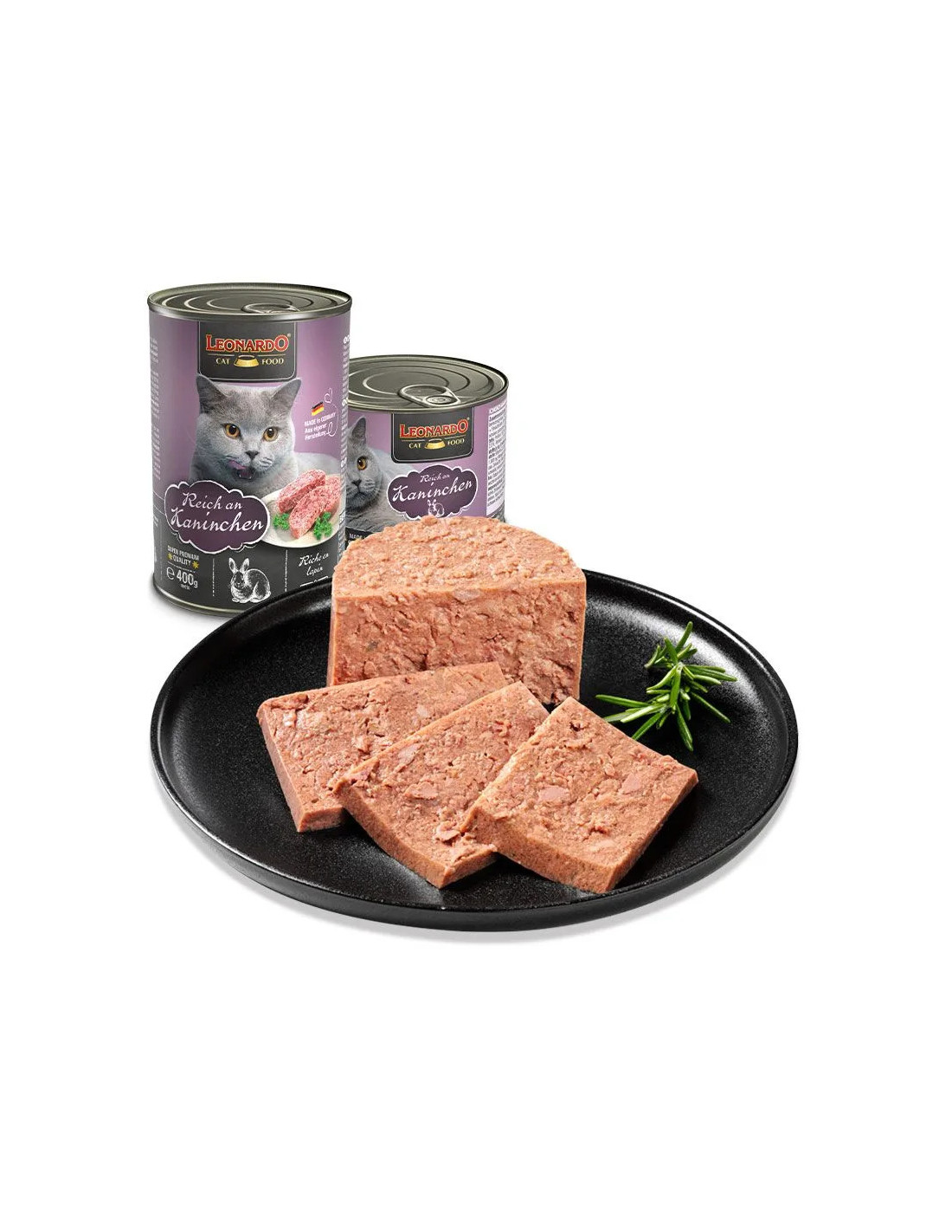 Leonardo alimento húmedo de alta calidad para gatos con productos cárnicos de calidad humana. Satisfacción nutricional en cada bocado, con los mejores ingredientes y un sabor irresistible.