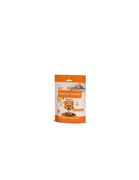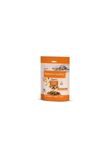 Toppers de Pollo liofilizados Natures Variety para perros. 80% pollo y frutas y verduras naturales. Completo, nutritivo y fácil de mezclar con su comida.